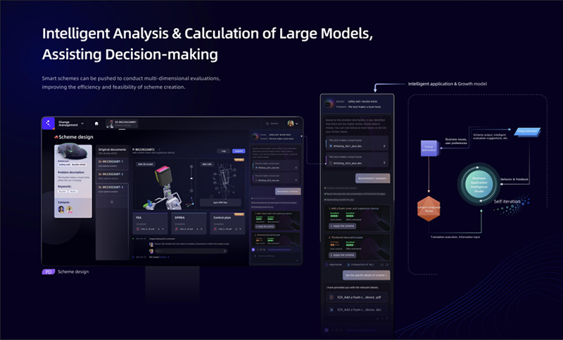 管理变更在汽车配件等高自动化、数字化、快速革新的行业中高频发生。当前的相关系统及业务中,普遍存在功能零散、从业者经验参差、资源浪费、信息传达效率低等问题,本系统通过“高集成、强智能、重持续、精体验”的产品理念与技术支撑,解决痛点问题,为客户创造轻松愉悦、高效便捷的全新体验。
