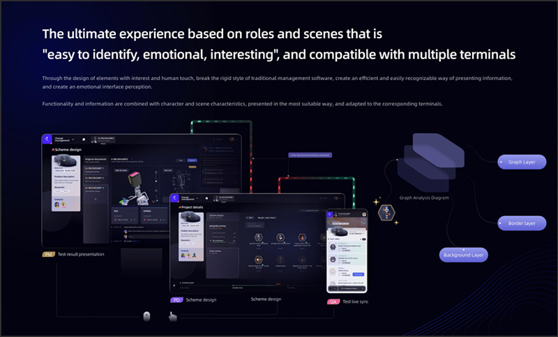 本系统可提供信息在不同角色与场景下的差异化视图,不同终端下的区分呈现,多终端兼容的交互模式,带来形式与功能、软件与硬件相结合的极致化新体验。