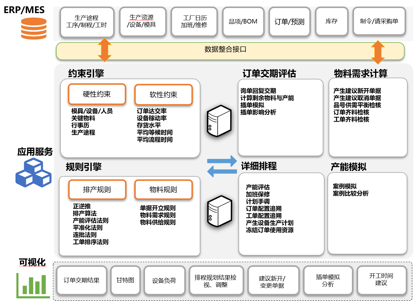 MRP 采用无限产能,只透过前置期决定预计进料时程,可能会造成工单齐料率不高及频于催料, sAPS 可依关键料预计到料时间后安排生产计划, 再由预计开工日安排非关键料的进货时程。